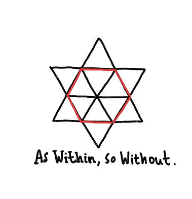 This concept of balancing the energies within our Consciousness, so that we harmonize ourselves with the divine proportions of these energies found in Nature, is called the Hermetic Principle. Named after the Greek god Hermes, the Messenger of the Gods, this idea has also been expressed by the adage "As Above, So Below; As Within, So Without." This conveys that that which takes place within our consciousness is reflected without to our perceptual surroundings. If our consciousness exists in balance and harmony, our external conditions will reflect this internal harmony and order. consciousness thrown out of balance will create chaos and disorder in our external reality.